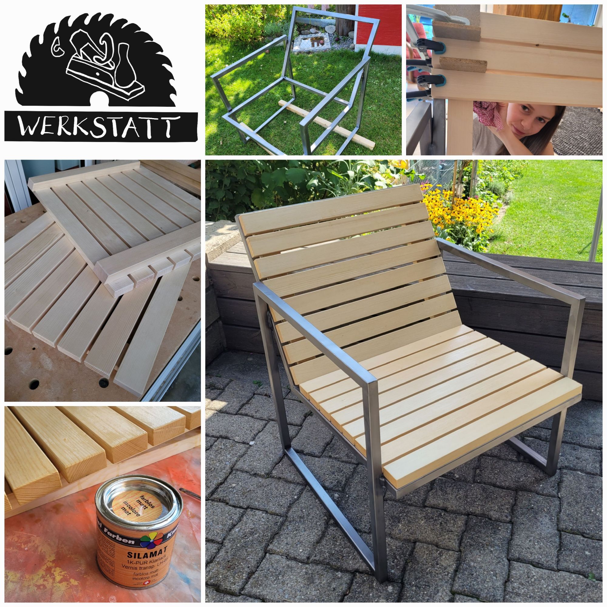 I bi no bir Schreinerei verbi, wo si mir Holzlatte für mi Sitz u Lehne hei zwäg grichtet.