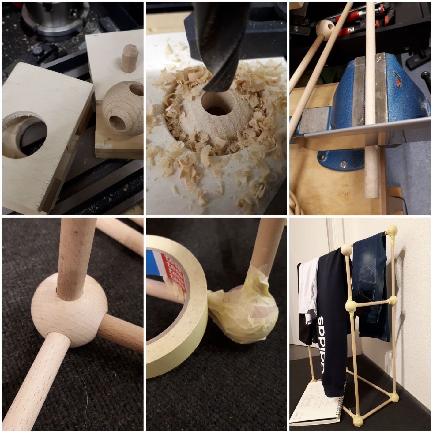 Zuerst musste ich eine Lehre zum Bohren der Holzkugeln herstellen.