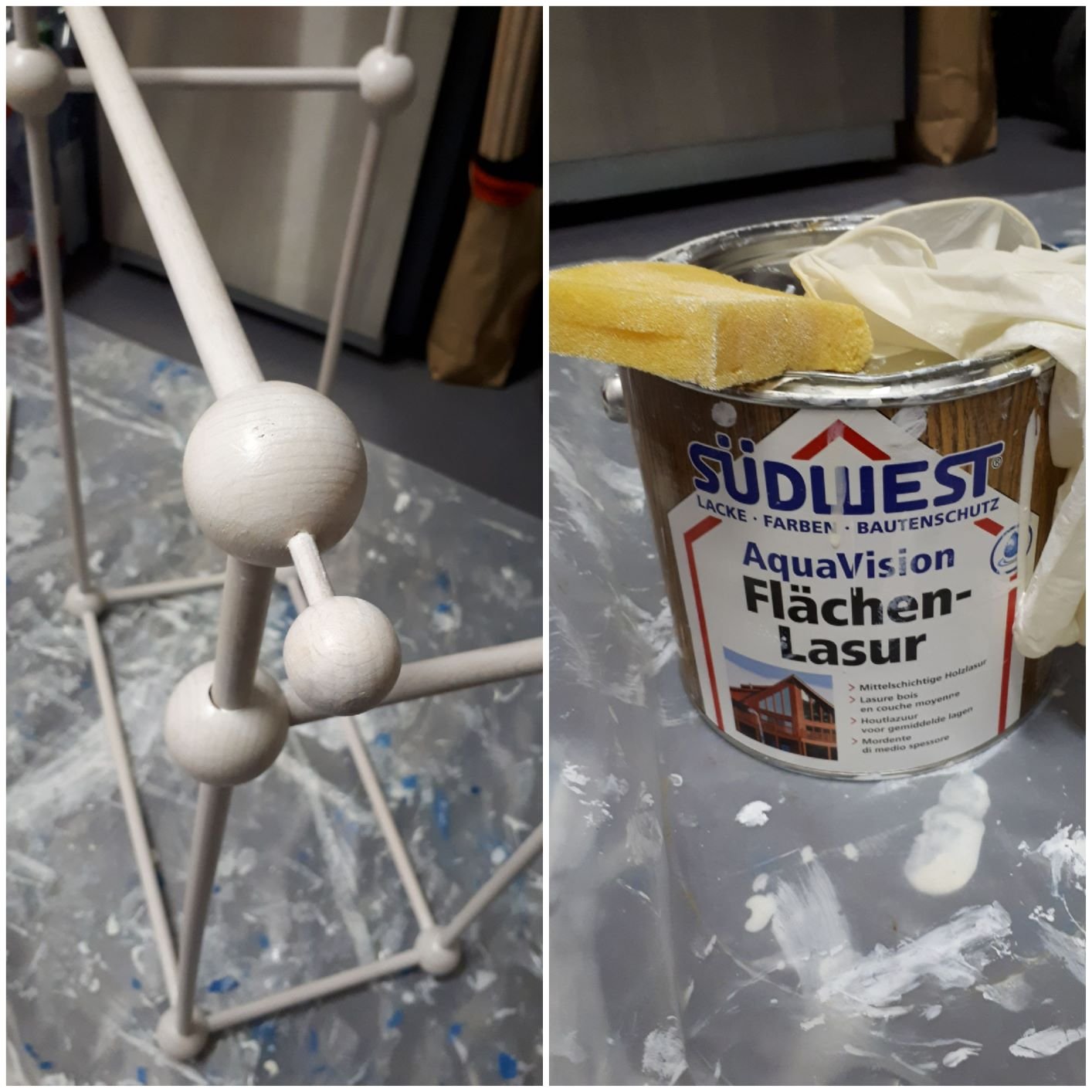 Da der Ständer zu den anderen Möbel passen musste, strich ich ihn 3x mit weisser Lasur an.